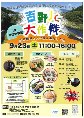 一般社団法人 吉野青年会議所主催のお祭りに出店さして頂くことになりました。